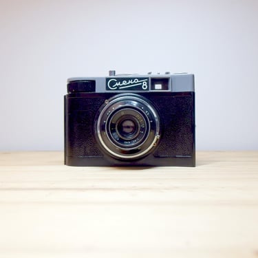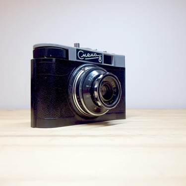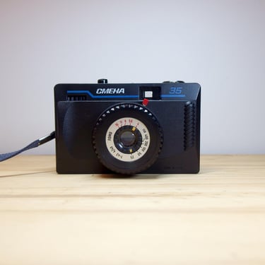 Smena es el nombre de una larga línea de cámaras fotográficas que se produjeron en masa y se vendieron muy baratas (lo siguen siendo), de uno y otro lado de la cortina de hierro. Son cámaras compactas y ligeras, casi enteramente hechas de plástico (baquelita en un primer momento). Cada modelo Smena venía con un número. Así, hay Smenas del 1 al 9 y luego la numeración se hace aleatoria, vienen la 11, 12 y 14, luego la 19, la 20 y la 35, alternando con nombres especiales como Smena Symbol, Automat, Rapid y Cosmic Symbol y no sé qué más. Existieron versiones para el mercado europeo con nombres como Panorama, Revue... En todo caso, es una familia numerosa.