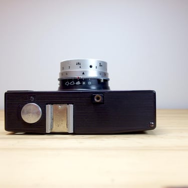 Es interesante constatar que, dentro de ese esquema todo plástico, los creadores de la cámara decidieron dotarla de un objetivo de vidrio y más bien complejo. Se trata de un Triplet, que es una fórmula óptica bastante antigua, que data de 1893 y que, como el nombre lo indica, es una óptica que consta de tres lentes: una divergente entre dos convergentes y que supuso una revolución en su época ya que corrigió diversas distorsiones y aberraciones ópticas, a un costo interesante. El Triplet será una de las ópticas utilizadas en las cámaras soviéticas destinadas al gran público, como las célebres Lubitel.